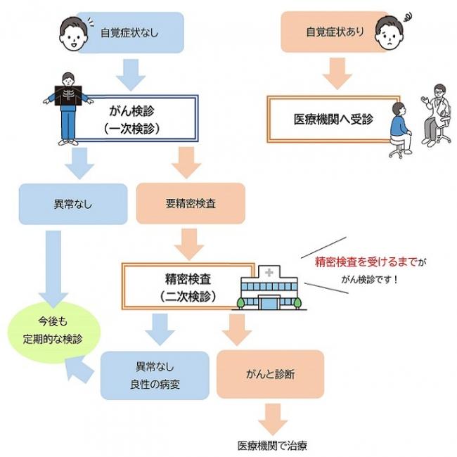 がん検診は自覚症状のない人が対象です。症状がある人、すでに経過観察中の人は、検診でなく医師の診察が必要です。