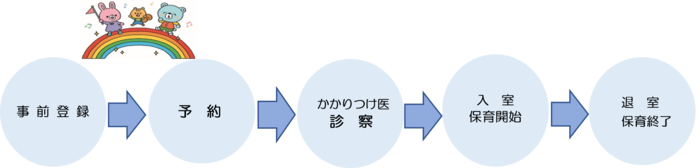 「医師連絡票」を持参のうえ、医療機関を受診し、病後児保育室の利用について診察を受けてください。(医師が利用可能と判断した場合、利用する事ができます。)なお、「医師連絡票」には費用がかかります。